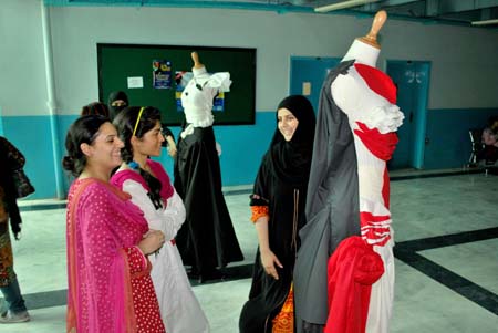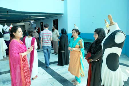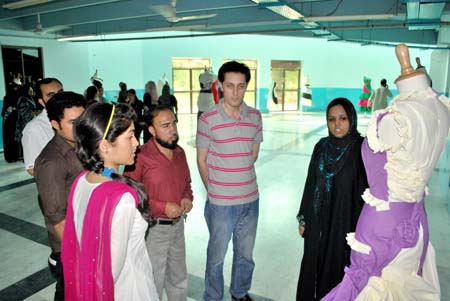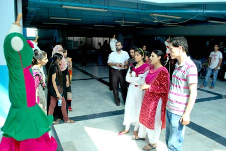 School of Textile and Design (STD) organized exhibition of student projects. Dr Nabeel Amin, Director, STD, visited the exhibition along with STD faculty and staff members. Bilal, Lab Engineer, STD, exhibited BTFD batch 1and 2 students' assignments at the exhibition. He explained that students were given these assignments to enhance their techniques of pattern making for fashion design. He also stated the techniques which were taught to students during the semester; namely transformational techniques (TR), pleating techniques, gathering techniques and dart transformation. Bilal further said that BTFD students are fully trained and he is sure that they will make hundreds of splendid innovative attires in a very short span of time.