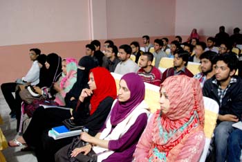The MIC team introduced the students to recent projects and products of Microsoft. Zaighum motivated the students to work hard and smart, and be informed about the opportunities available around. Later, Shahid conducted an App development session on MS-Windows 8.1. MIC offered their full support and internship opportunities to UMT CS/SE/IT students. They will also offer free of cost help and tools to build and test projects on Microsoft platform. In addition, they will give Dream-spark account membership to selected students to get free Microsoft products.