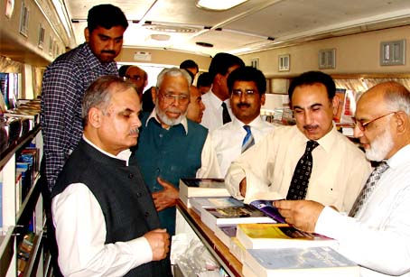 The UMT library marked the World Book Day on April 23, 2008 by organizing a Mobile Book Bus fair in collaboration with Oxford University Press (OUP), Pakistan. The event gave book lovers a chance to broaden their knowledge. The two-day Book Fair concluded on April 24. It was inaugurated by the Acting Rector Dr Rashid Kausar. Those who were present during the inauguration included Dr Muhammad Zafar Iqbal, Dean SSH, Salman Saeed Qureshi, Registrar, faculty members, library committee members and Heads of Departments. A large number of students also showed interest in the Book Fair. Nearly 500 titles ranging from politics, poetry, economics and education to ornithology and technology were put on sale.
