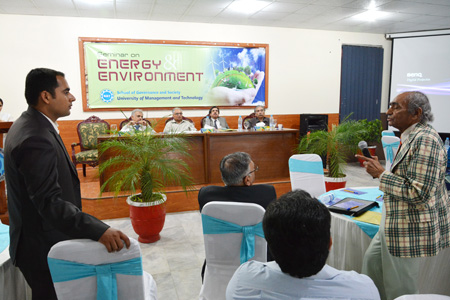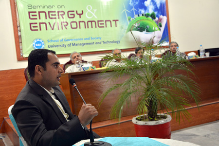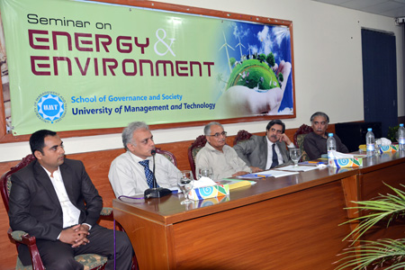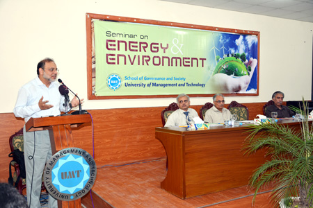 The School of Governance and Society organized a seminar of “Energy and Environment” at the University on May 6, 2014. It was inaugurated by Dr Hasan Sohaib Murad, Rector UMT, who delivered his thoughtful address in which he highlighted governance issues which have put Pakistan in a grave situation on the energy front.