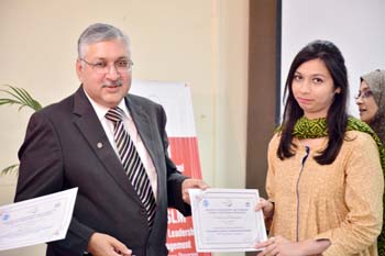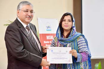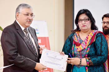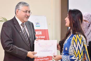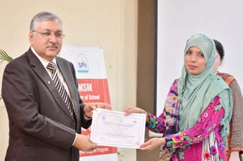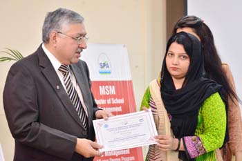 All the venues were concluded by 12:45pm and by 1 o’clock the Chief Guest Director General University of Management & Technology Mr Abid Sherwani arrived and distributed certificates to the participants and souvenirs to the presenters. DG University of Management & Technology concluded the session by appreciating the participants for attending two days academic forum, he also valued the efforts of students of Master of School Management and Ms School Leadership and Management and suggested that such type of collaboration should be the regular feature. He emphasized that without adapting updated academic practices we can compete the global academic market.