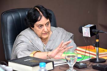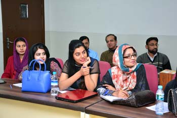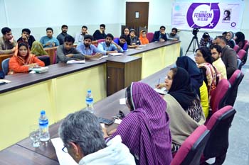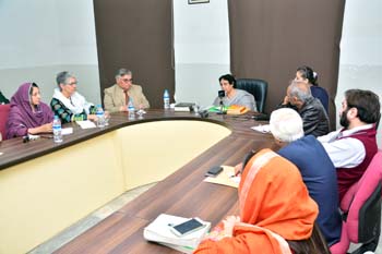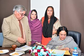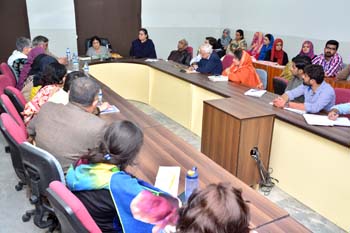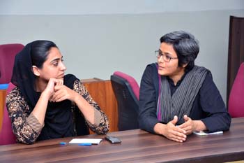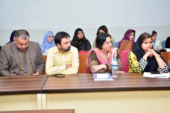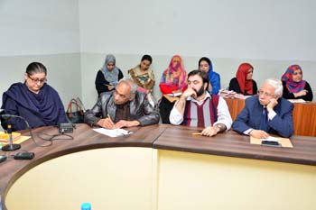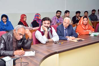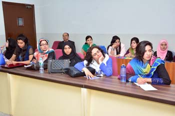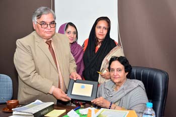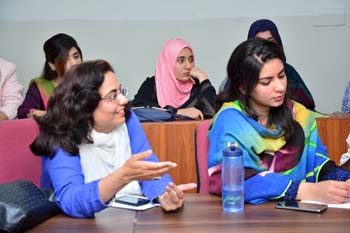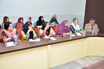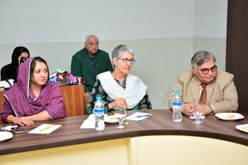 Department of Gender Studies at the School of Advanced Studies, UMT arranged "A talk on Feminism in Islam" on 27th February 2017, in connection with International Women's Day. Professor Emerita Dr Riffat Hassan, with a rich background in Religious Studies and Philosophy, enlightened the audience with her research on Qura'nic interpretations as regards to the age-old debates on women's rights and concept of Emancipation of women in Islam v/s Feminism. Ms Romasa Nasir recited verses from Qur'an at the beginning of the session and Ms Ambreen Salahuddin, In-charge Department of Gender Studies welcomed the guests. The audience, comprising of faculty and students of diverse disciplines participated enthusiastically in the Q&A session. Dr Abdul Hameed, Dean School of Advanced Studies gave concluding remarks