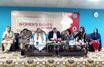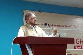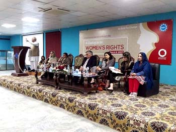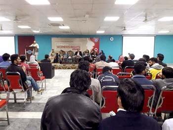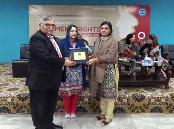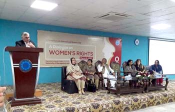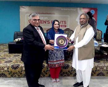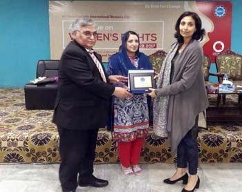 The Department of Gender Studies at the School of Advanced Studies, UMT held a seminar "A Dialogue on Women's Rights" in connection with International Women's Day, on Thursday, 9th March 2017. The ceremony was conducted by Ms Iram Rasheed, Lecturer DGS. Ms Ambreen Salahuddin, Asstt. Prof and In-charge DGS delivered the welcome address. The worthy guests speakers were; Ms Hina Butt (MPA, Punjab Assembly), Mr Fareed Paracha (Naib Ameer, Jamat-i-Islami Pakistan), Ms Fauzia Viqar (Chairperson, Punjab Commission on the Status of Women), Ms Mumtaz Mughal (Resident Director, Aurat Foundation). Dr Abdul Hameed, Dean SAS and SSS&H gave concluding remarks and presented UMT souvenirs to the guest speakers. The session was well-attended and audience participated enthusiastically in the Q&A session.