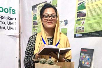 Alvina Fatima from School of Architecture and Planning from UMT Presented her project with a main objective of “Human Healthy Environment” she designed roof gardens on which there is a proper drainage system designed along with the construction techniques and There are different layers of chemical, waterproof, protection, filter, vegetation, grass drainage etc. above the roof.