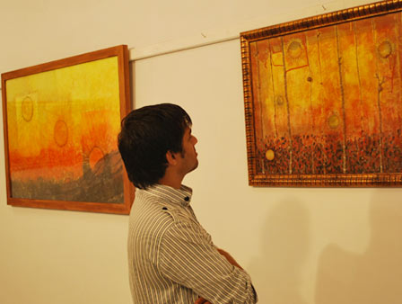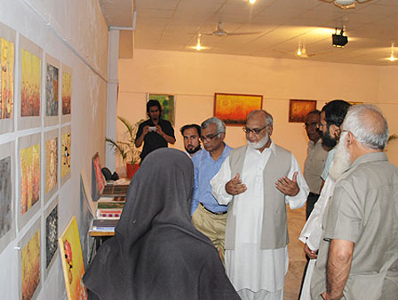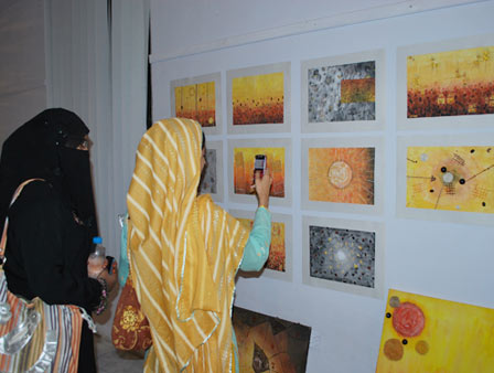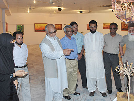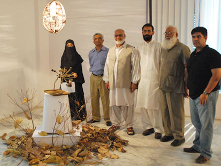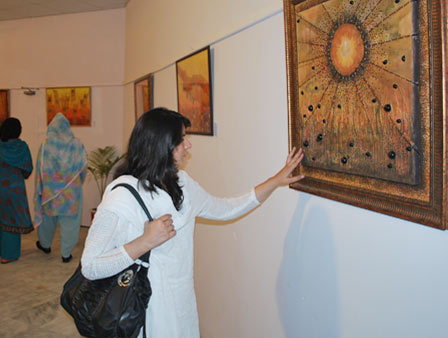 Kinza Ameen, student of BS Textile and Design Technology, organized an exhibition of paintings and other art work as part of her final year thesis project on 08-11 October, 2010. The central theme of the exhibition was “growth”. According to her, she chose this theme because growth is an inevitable process of nature which is based on change. Growth, she says, is nature’s gift to the universe and that is why she chose this topic. In her artwork, Kinza has tried to expose the different dimensions of the process as well as the medium and has experimented with visual depiction of ideas in terms of colors, shades and tones. Kinza also made use of sculpture to showcase her creativity. She did not confine herself to a single medium but made use of mixed media i.e. oil, water color, acrylic, fabric, everything that she felt would convey her ideas. One of the installations titled ‘metamorphosis’ and ‘mother earth’ depicted subtle transformation of the life and death, showing how these realities are interconnected.