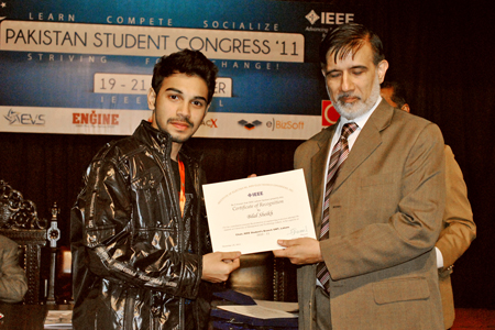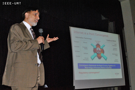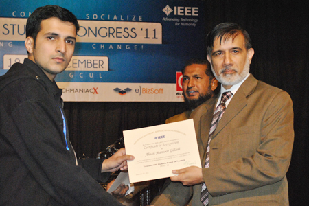 The IEEE-UMT core team led by Bilal Sheikh attended the Annual General Meeting held at GC University on December 20, 2011 and presented an opportunity for interaction and exchange of information with fellow members. The IEEE Lahore Section annual report was presented by the Chairman Dr Shafay Shamail. Bilal Sheikh, Chair IEEE-UMT, presented annual report 2010-11 to IEEE Lahore Section. He presented a summary of the events, activities and achievements of IEEE-UMT over the past year. He also highlighted some activities planned for the future such as workshops and seminars. Bilal's speech is accessible online at this link: http://www.youtube.com/watch?v=PoXOB_UVNhU&context=C3178af9ADOEgsToPDskK-03vwrwFG6lP78sj6THm4