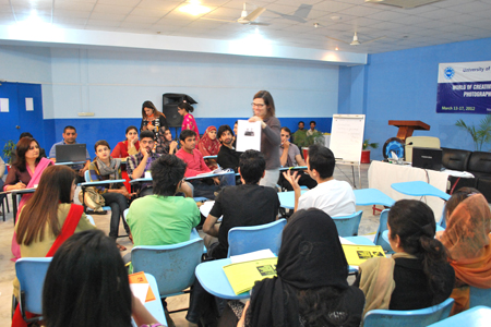 In order to move from picture in words to words in a picture, the workshop was directed towards a session on “Photography”. This piece of instruction attracted the highest number of students who ended up getting polished in reading between and behind the sketch of an image. This was a remarkable attempt at producing creators of effective photo-essays at the university. Last but not the least, was a comparatively short yet equally valuable talk on “Contemporary American Literature”. This session served as a lock to the chain that hooked up the whole week’s intensive workshop on a note of cross-cultural comparison between contemporary America and Pakistan through the mirror of literature.
