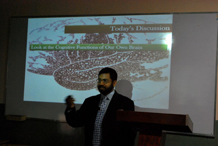Professor Dr Abdul Hameed, Dean/Chairman SSS&H, graced the occasion with his presence along with the faculty of social sciences. Dr Iftikhar Ahmed welcomed Dr Omayr Mehmud, an expert in the field of neurosciences who earned his PhD degree in Clinical Psychology from USA. He talked about brain and human reflexes and its relation to our behaviors. He encouraged students to participate actively in the seminar. This was followed by a question and answer session.