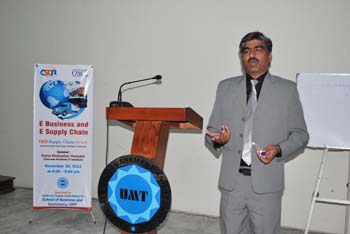 The 9th CSCR Supply Chain Forum at HSM-UMT invited Rana Mubashar Hussain, Chairperson of Multilines IT Solutions, as the guest speaker in a session on “E-Business and E-Supply Chain” on November 29, 2012. The seminar was attended by ERP students, IT and HSM faculty members.