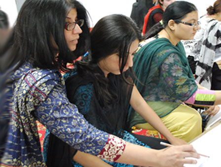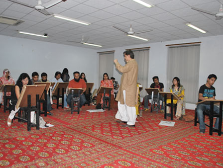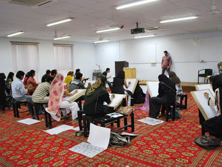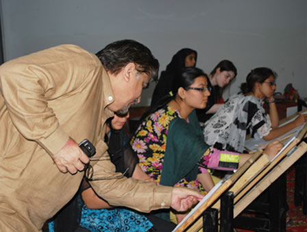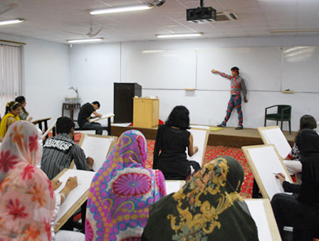The Department of Textiles, School of Science and Technology (SST) and the Center for Management Development (CMD) invited renowned artists Mr and Mrs Jamal Shah to conduct a one-day workshop on drawing at the UMT campus. The workshop introduced the participants to basic concepts of line drawing. Students went through various exercises to train them in making still life drawings by using different mediums and mind exercises for visualization and conceptualization. A large number of students participated in this unique workshop that turned out to be a great learning experience for them.